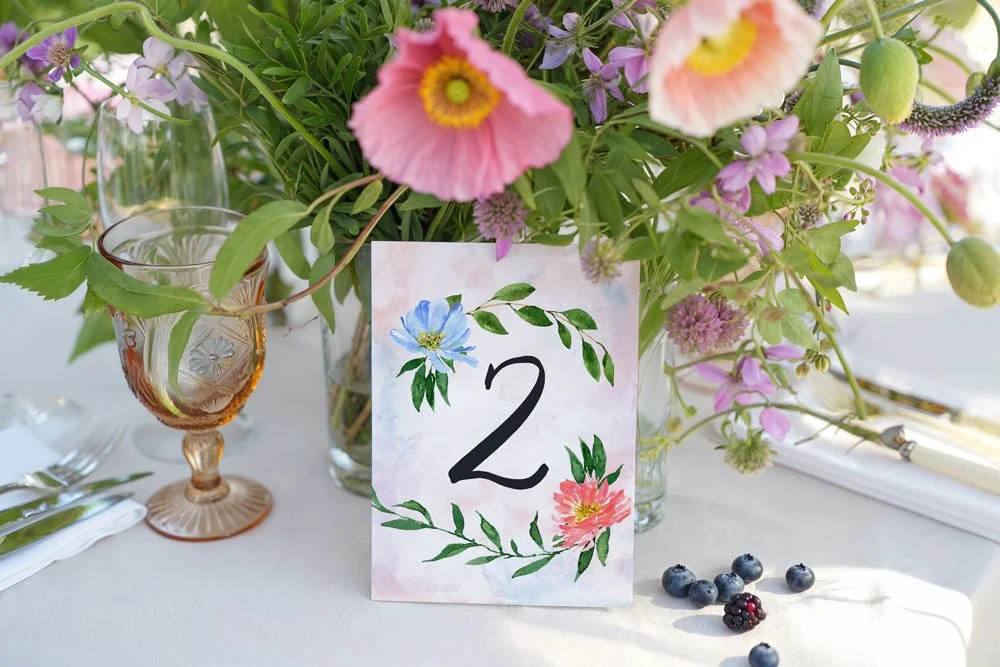 Soft scripts, handwritten fonts, and floral illustrations brought a touch of summer romance to their day-of pieces.