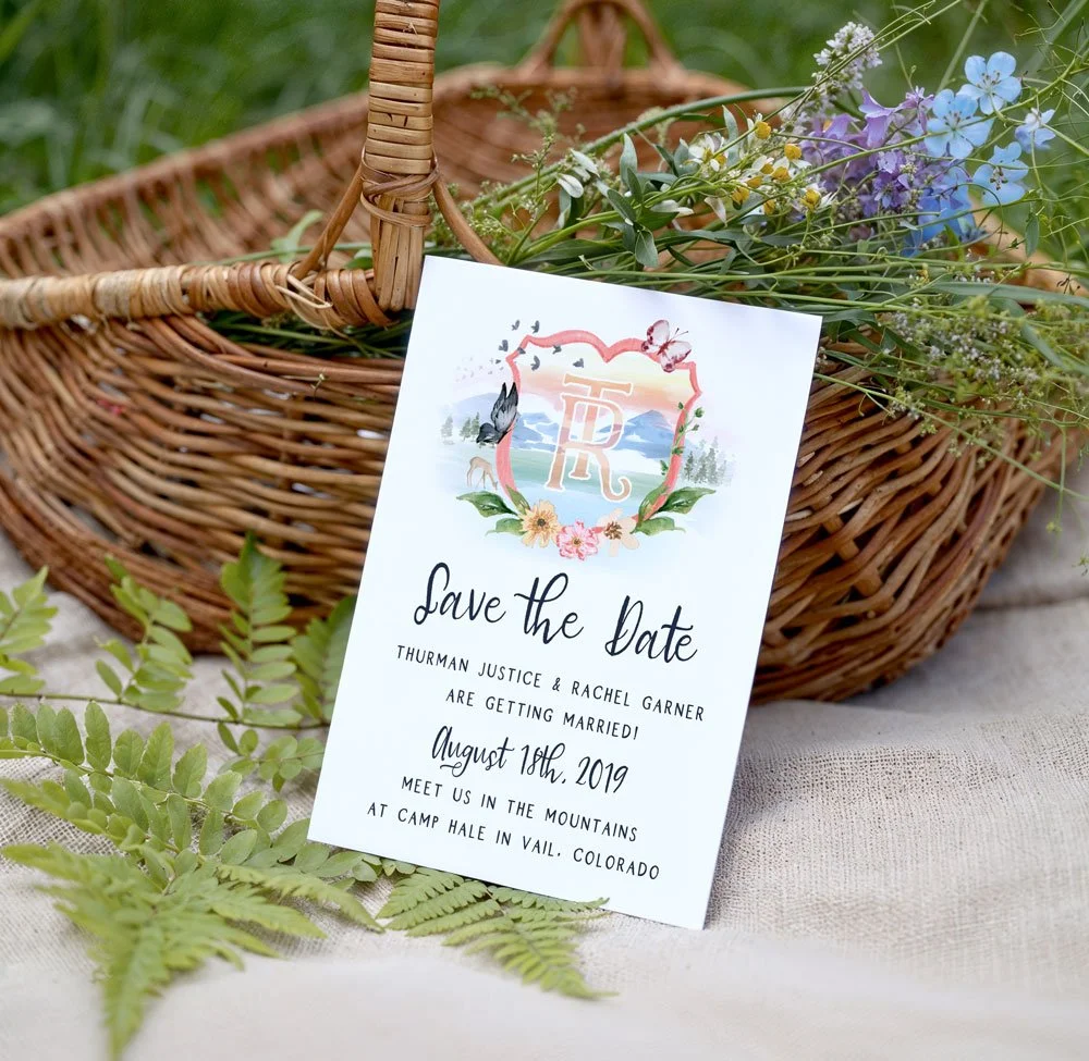 Set in the heart of the Colorado mountains at Camp Hale in Vail, Rachel and Thurman’s wedding was a celebration of whimsy, nature, and heartfelt adventure. Among wildflowers, evergreens, and the gentle hum of mountain air, their stationery captured the spirit of the weekend — playful, romantic, and deeply personal.